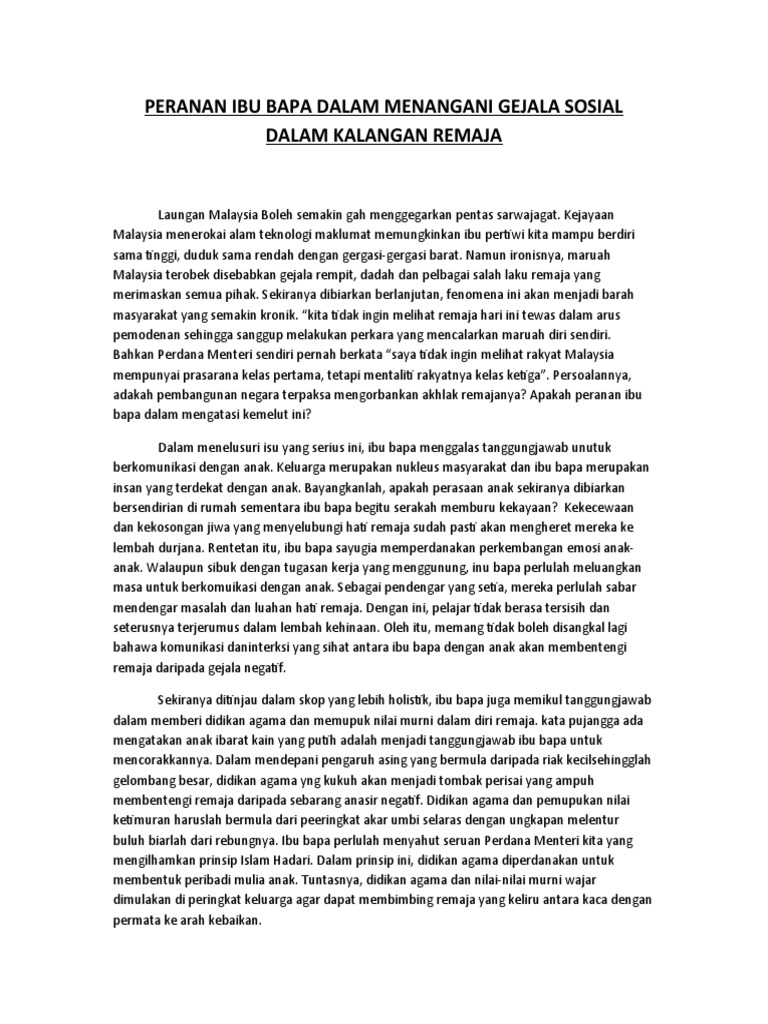 Peranan Ibu Bapa Dalam Menangani Gejala Sosial Dalam Kalangan Remaja Pdf